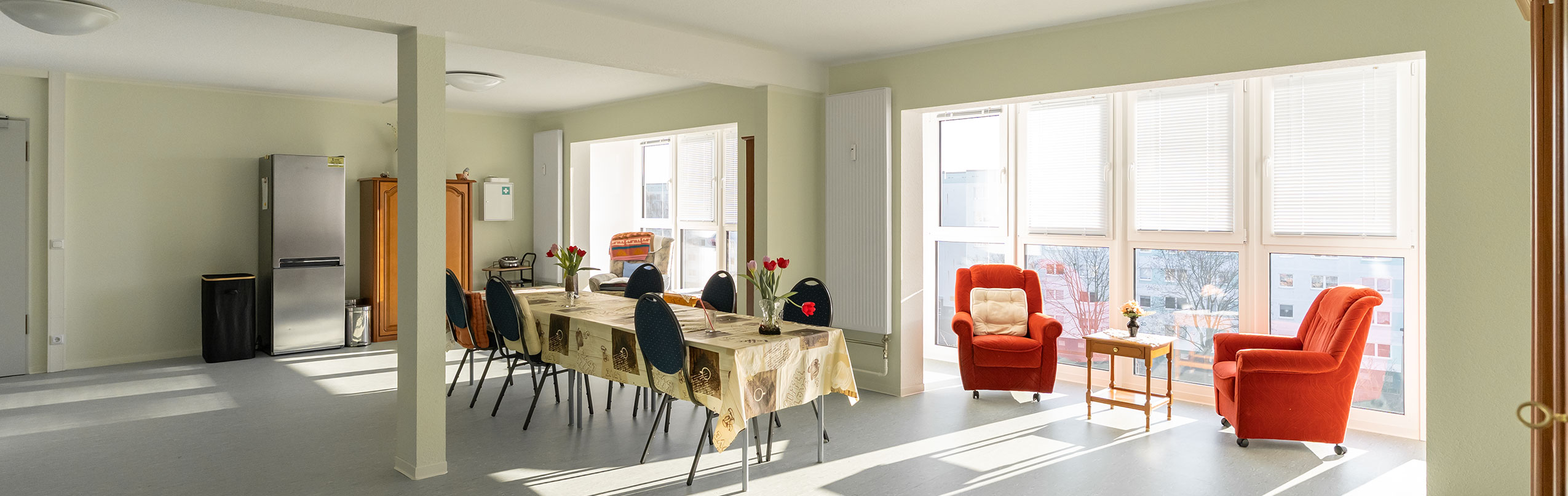 Die Gemeinschaftsräume sind liebevoll ausgestattet und ihr eigenes Zimmer können Sie nach Ihren Wünschen individuell einrichten.